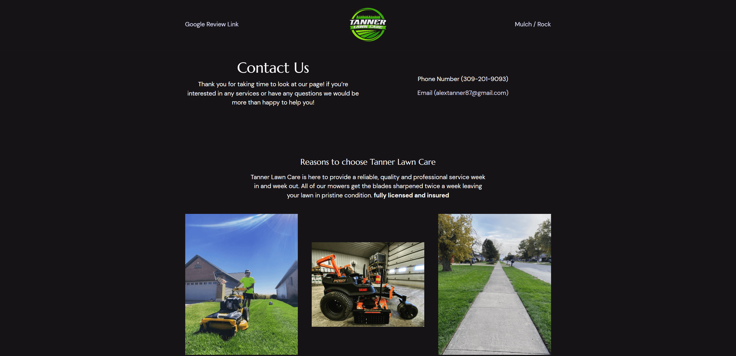 Tanner Lawn Care was my most recent client in regards to re-branding. I created Tanner Lawn Care new logos, a website to advertise his business, and designed apparel.